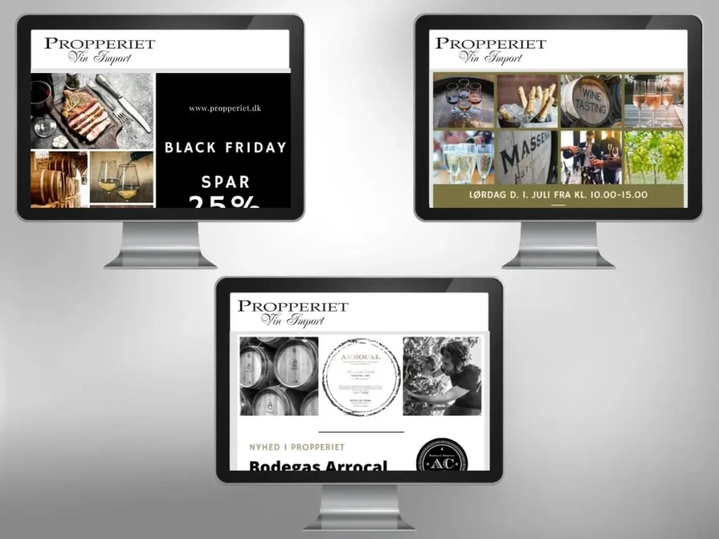 Design, omsætning af nyhedsbreve for propperiet vin import.